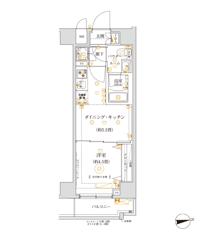 ■専有面積/ 25.50㎡(約7.71坪)※MB含む